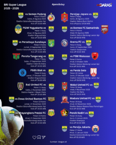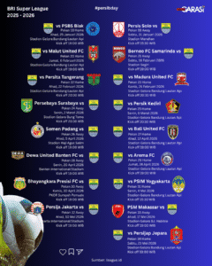 Jadwal laga Persib Bandung di kompetisi BRI Super League 2025–2026 sepanjang musim sudah rilis.